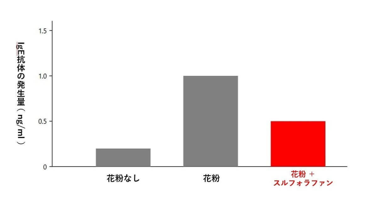「そうです。スルフォラファンには、体の中の過剰な反応を抑える力があるとされていて、IgE抗体が増えすぎないように働くことが示されています」
