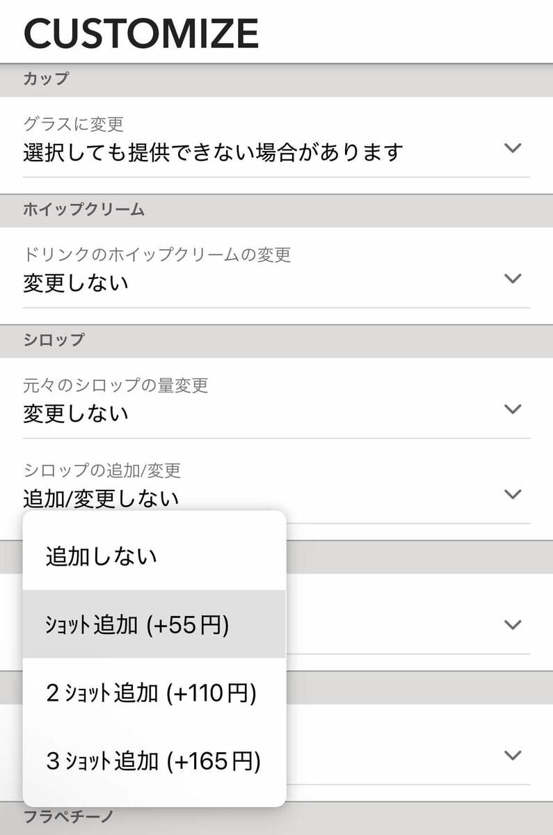 カスタマイズ欄から簡単に設定できるので、スタバの注文に慣れていない方も安心です♪