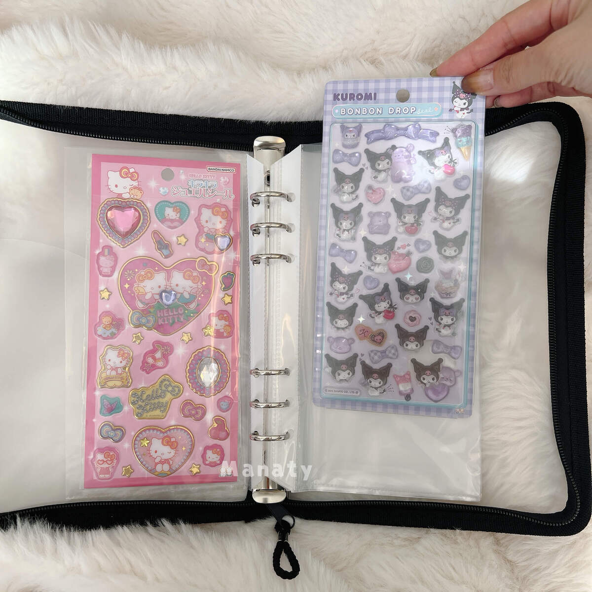 「お気に入りのシールは台紙から剥がしたくない」「シートのまま保管したい」という方には、ダイソーで買える6リング専用の「フリーポケット」がおすすめ!なんと110円で25枚も入っていて、コスパも最強です。
