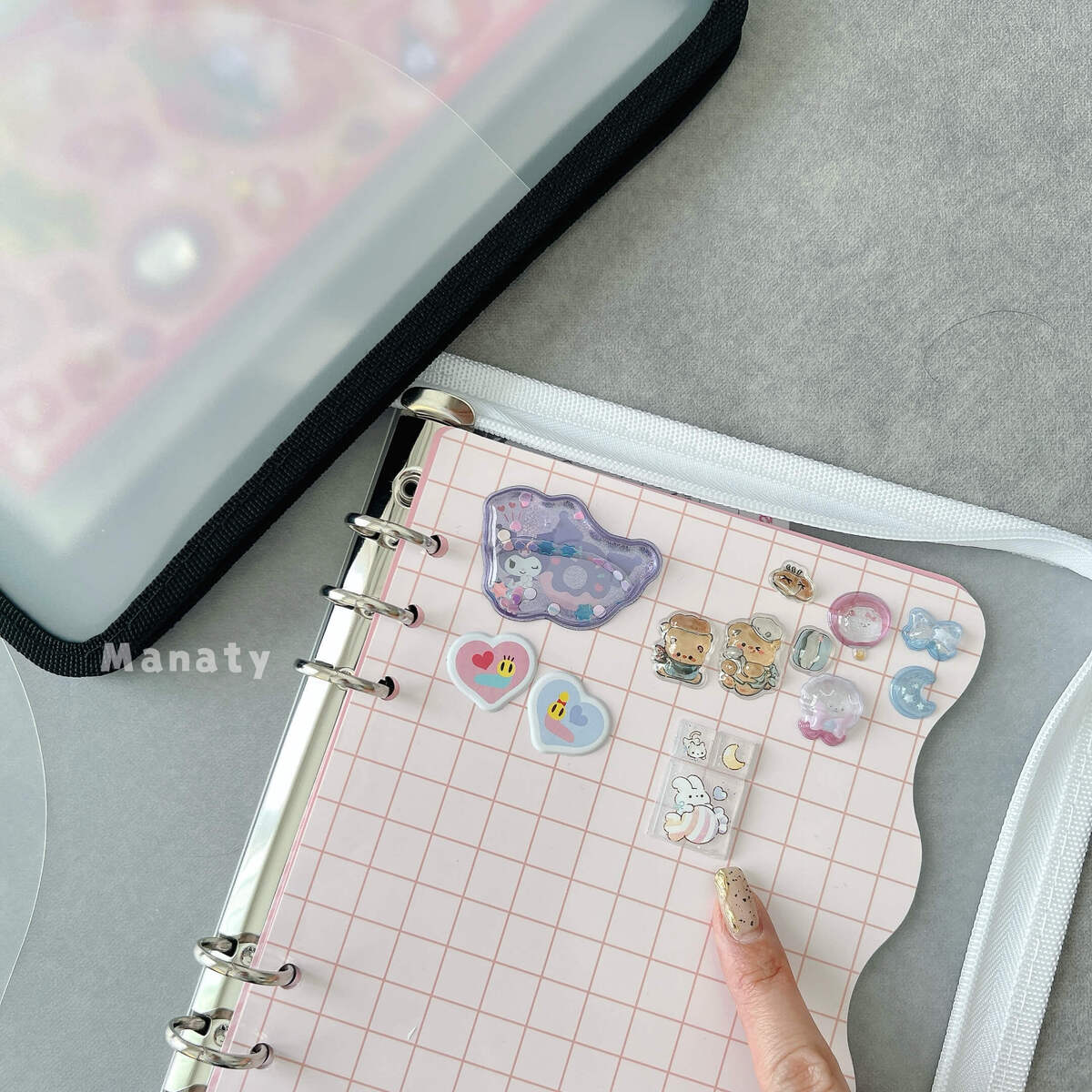 実はベースの6リングファイルの背面にはストラップループか付いています。ここにお気に入りのキーホルダーを付けることでカスタム感が一気にアップ!
