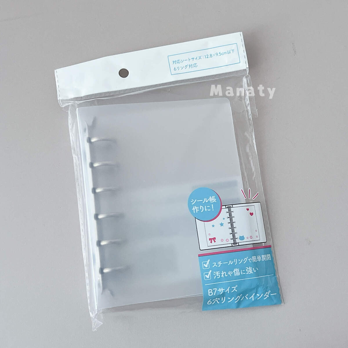 B7サイズの「6穴リングバインダー」に、新作の「貼ってはがせるシール台紙」をセットして作ってみました。