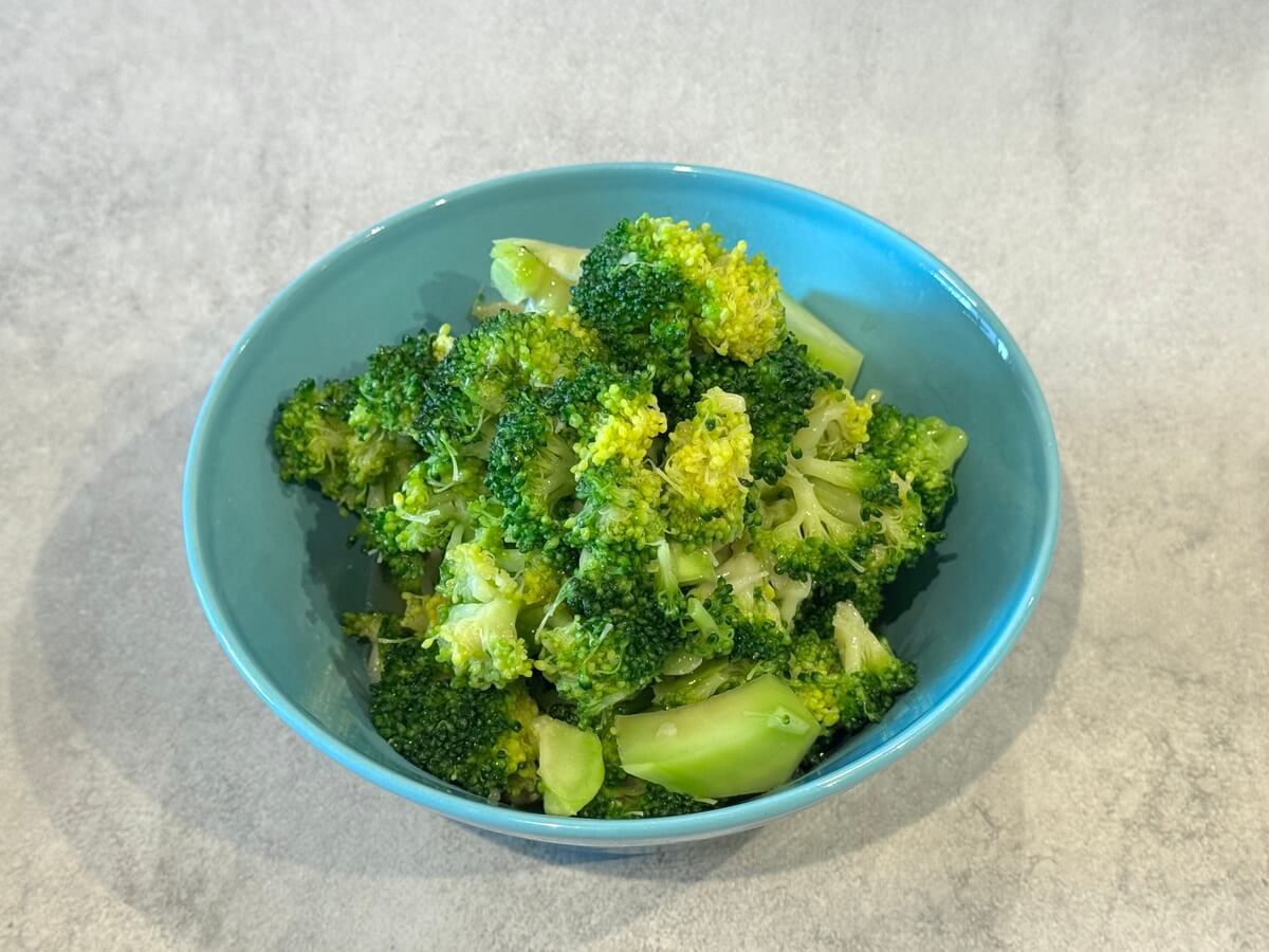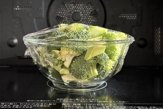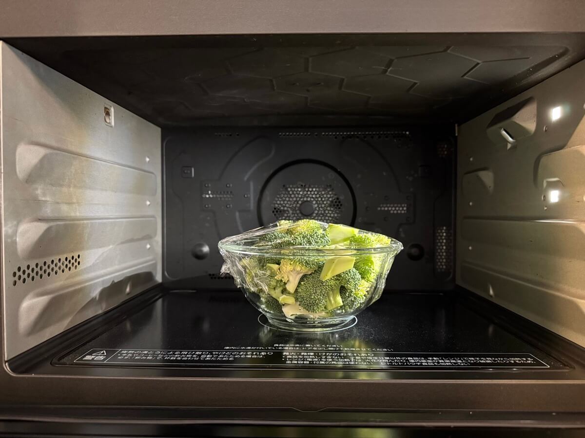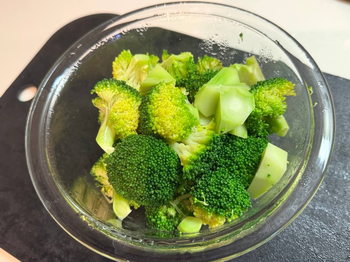 茹でるよりとっても簡単。ザルに上げる手間もなく、ほくほくのブロッコリーができあがりました。