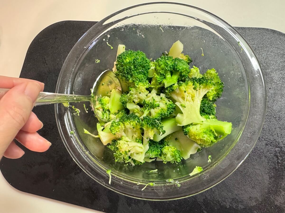ブロッコリーがやわらかくなっているので、あまり混ぜすぎるとほろほろ崩れてしまいます。