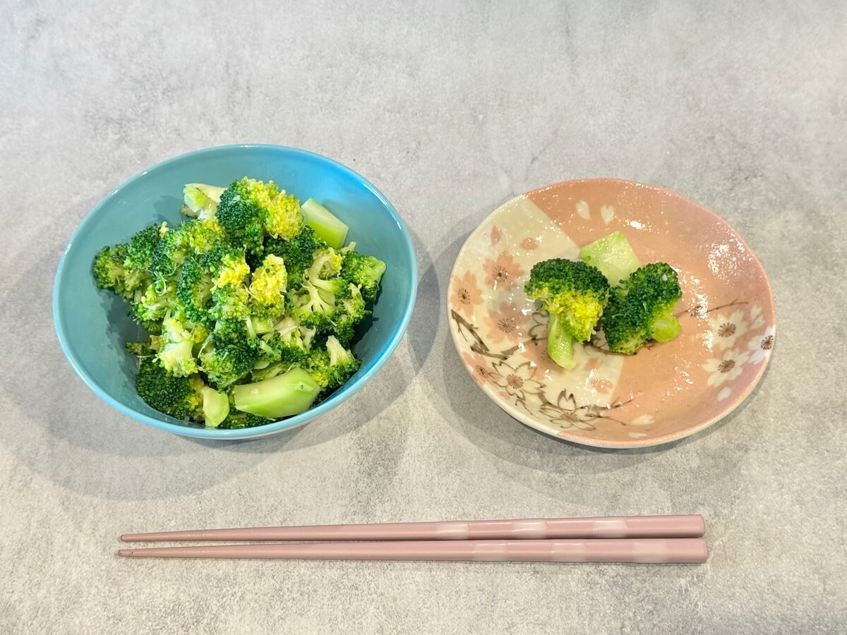 お皿に盛り付けたら「ブロッコリーのレンチンナムル」の完成です。
