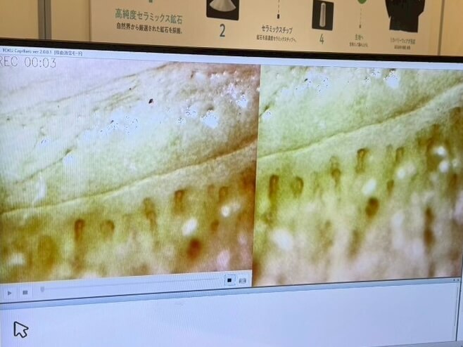動きの鈍かった血流が、布を被せて1分ほどでぐんぐん動くようになりびっくり!担当者の方曰く、冷え性の方は、特に違いを体感できると話していました。