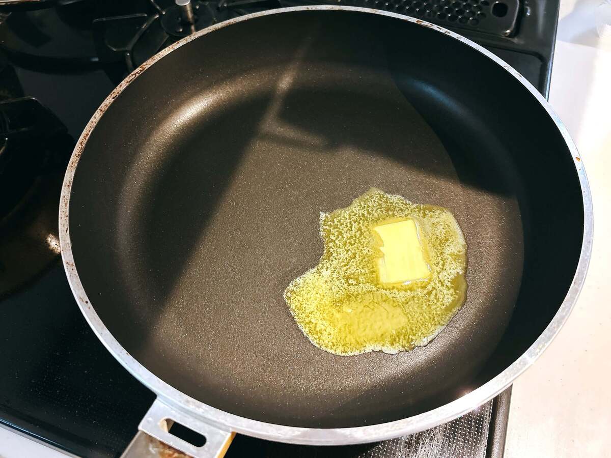 作り方③ホットプレートにバターを置き、こんがり焼く
