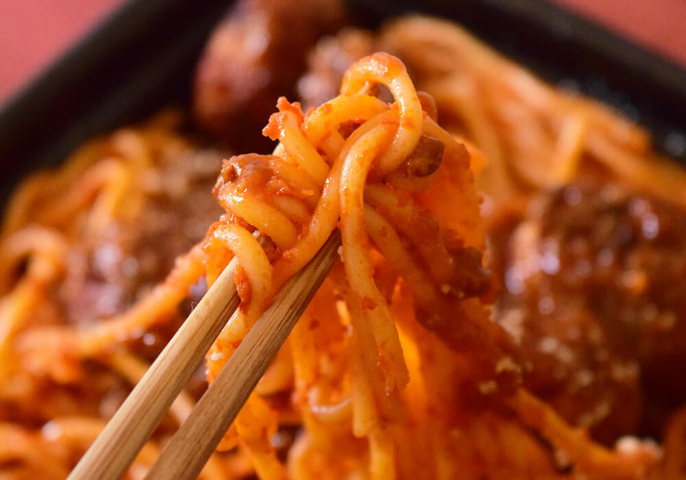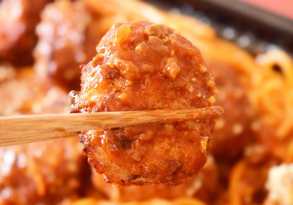 ナポリタンの上には、大きめのミートボールが8個ものっています。ミートボールだけでも食べ応えは十分で、こってりとしたデミグラスソースと肉感のあるソースが絡み、思わず別にごはんが欲しくなるほど。つい手が止まらなくなる一品です。