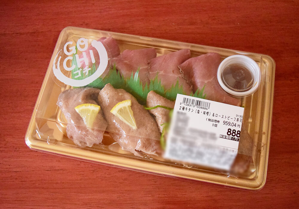 ロピア「2種の牛タン(塩・味噌)&ローストビーフ寿司」実食レポ