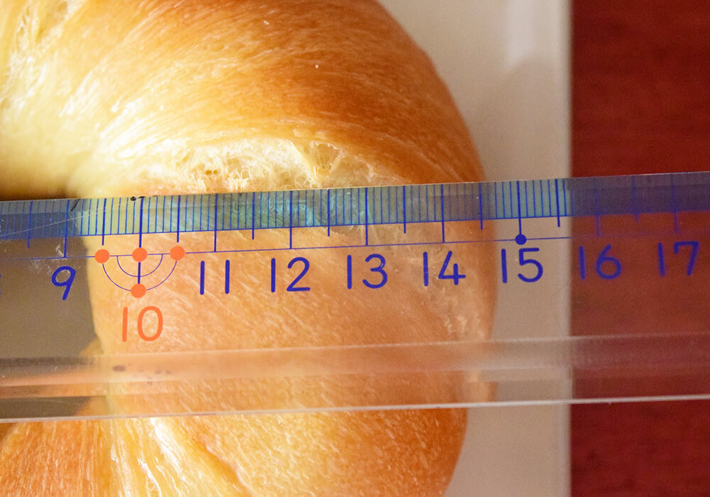 番組では「直径は約13cm」と紹介されていましたが、私が手にしたベーグルを測ってみると、なんと約14.5cm。「え、テレビで紹介されていたものより大きいなんてことがあるの……?」と、思わず驚いてしまいました。他3つのベーグルの直径に関しても、13.5cm~14.5cmほど。デカすぎます。