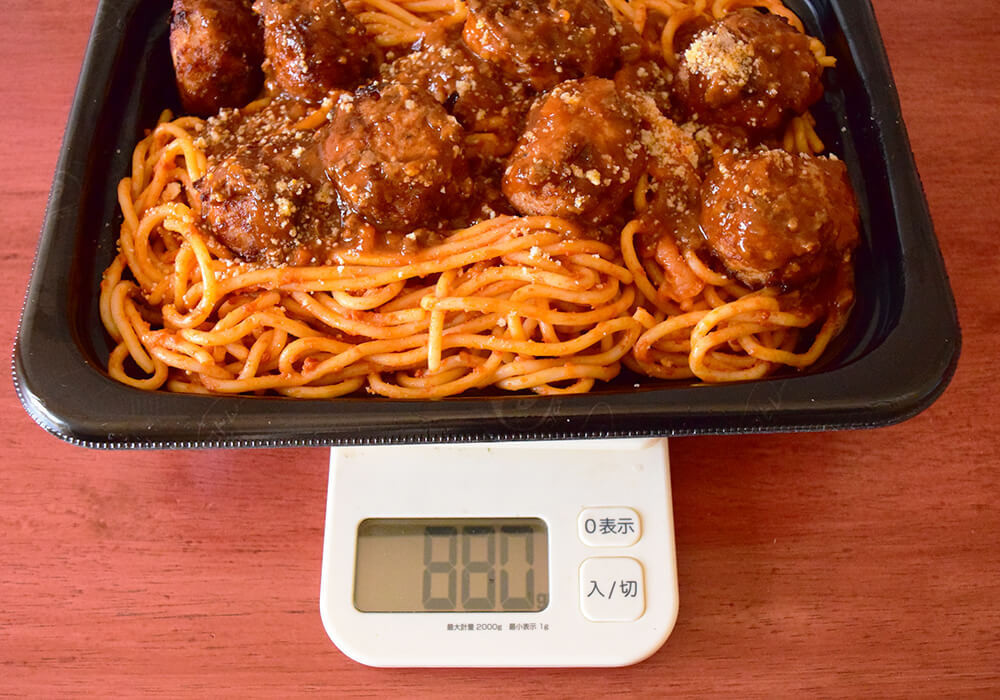 容器ごと重さを量ってみたところ、なんと約880gもありました。少なくとも、ひとりで完食するのは難しい量です。まさに「デカい総菜」と呼ぶにふさわしく、我が家では家族4人分の食事の一品として購入しています。