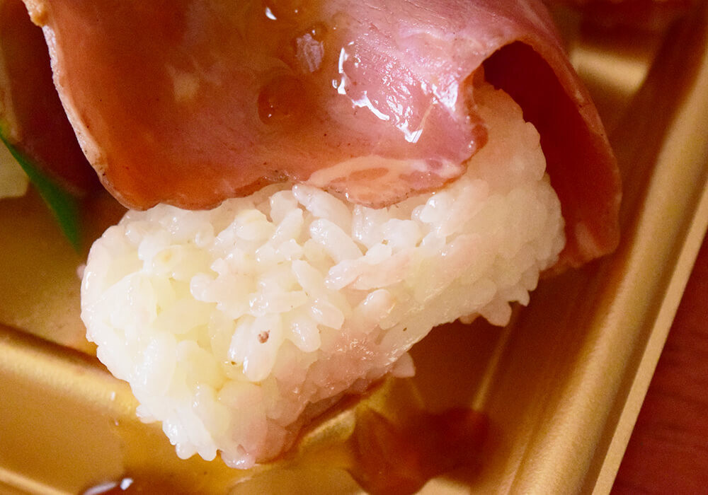 なお、ローストビーフ寿司には酢飯が使われており、この点は好みが分かれそうです。個人的には白米のほうが好みですが、酢飯のほどよい酸味が肉の旨味を引き立てており、これはこれで納得感のある組み合わせだと感じました。