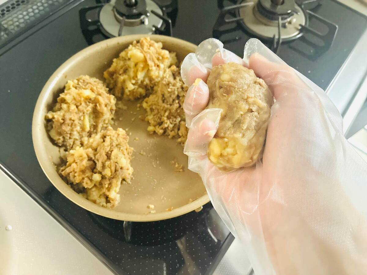 作り方④①と③を混ぜ、成形する