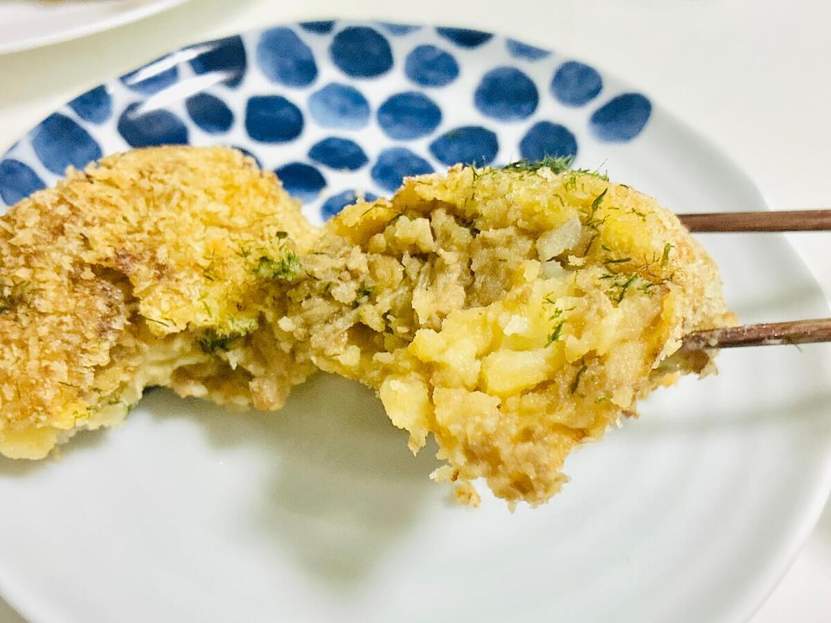 もちろん、そこにパン粉のサクサクとじゃがいものホクホク、炒め玉ねぎの甘みやコクが相まって、コロッケとしての魅力もばっちりです。