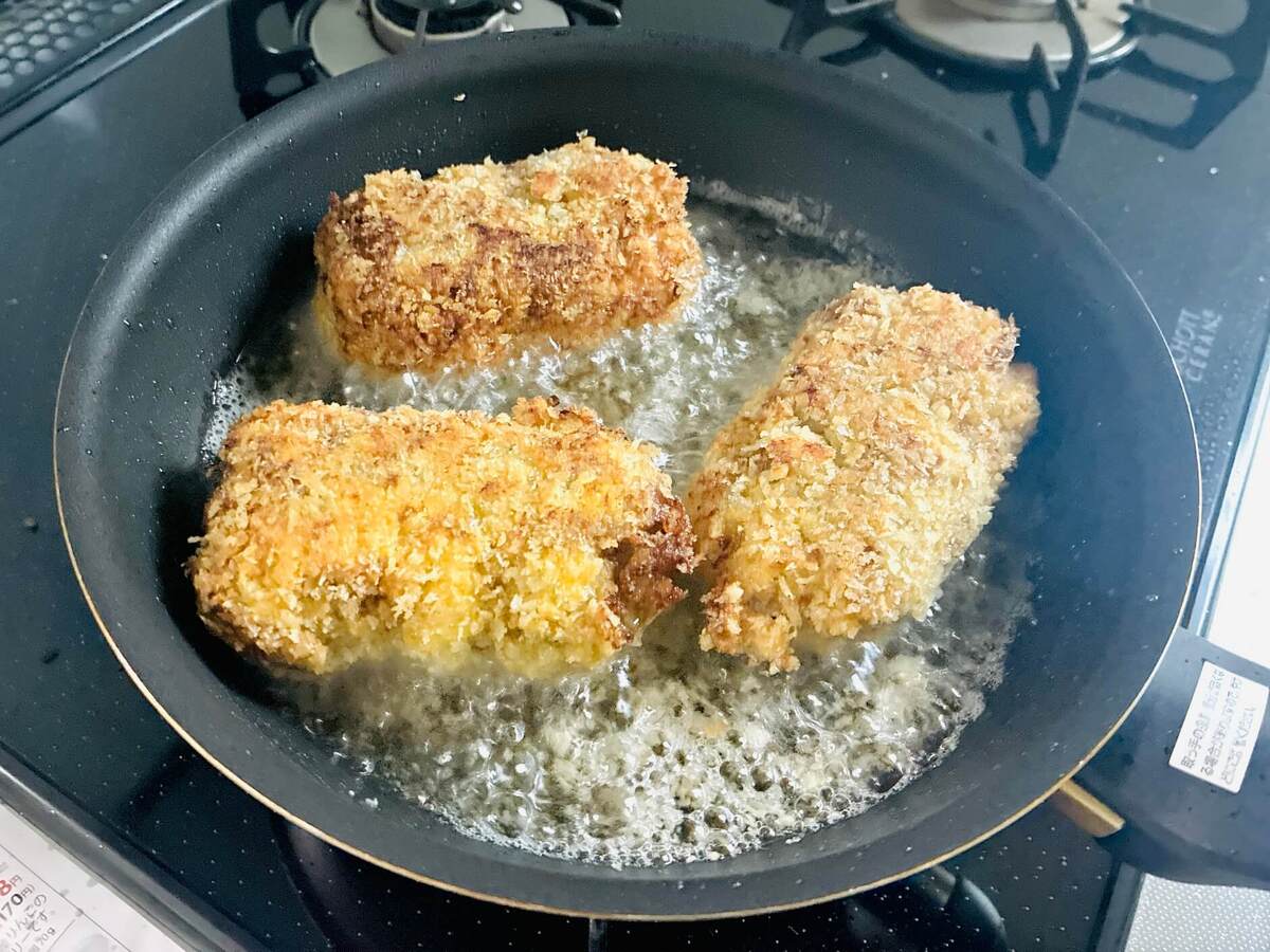 ここでのポイントは、しっかり冷ますこと。揚げる時に破裂するのを防げるそうですよ。