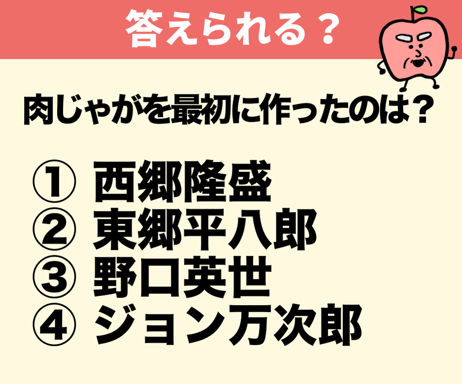実はこの料理、日本で知名度が超高い人が「イギリスで食べたビーフシチューを再現しろ!」と部下に命じたことから誕生したといわれています。その人物とは誰でしょう?