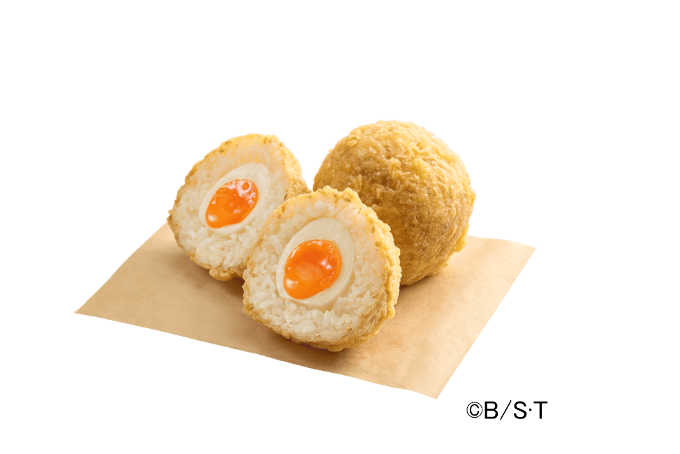 孫悟空の大技「元気玉」にちなんだ、ボリューム満点の商品。半熟玉子を白米でつつみ、白ごまとすりごまをまぶして天ぷら粉で揚げた丸亀製麺史上最大級のおむすびで、一つ食べれば元気になること間違いなし。お好みで「天丼のたれ」をかけるのもおすすめです。