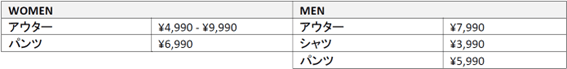 商品ラインナップ: ウィメンズ3アイテム、メンズ3アイテム