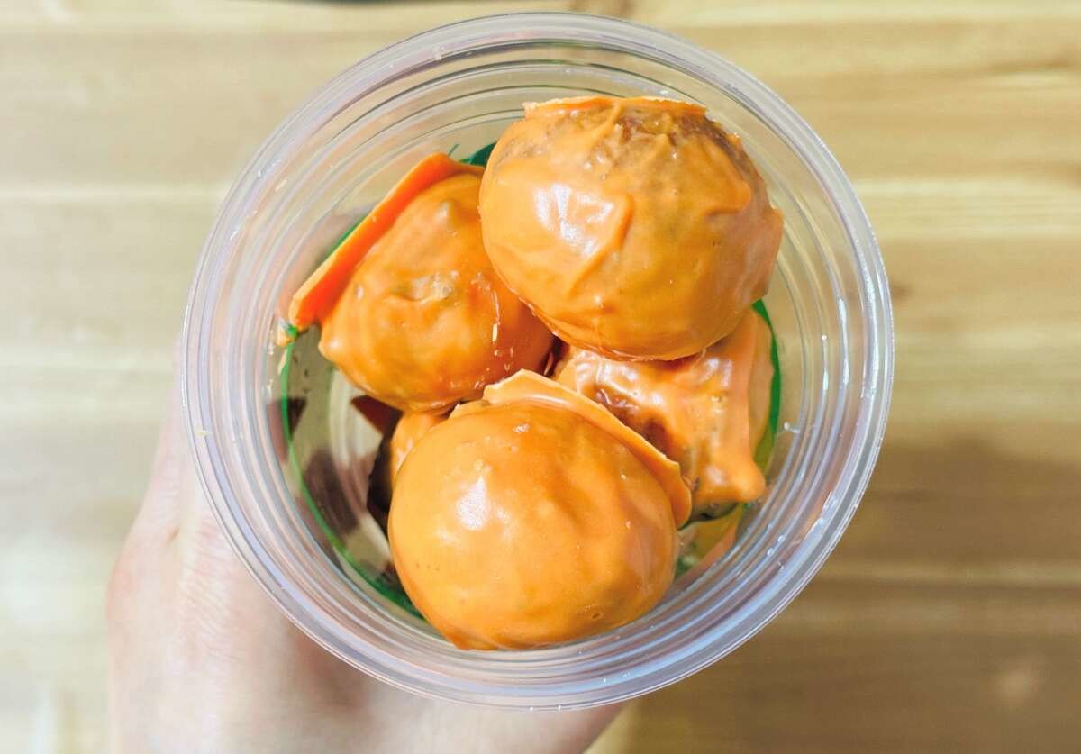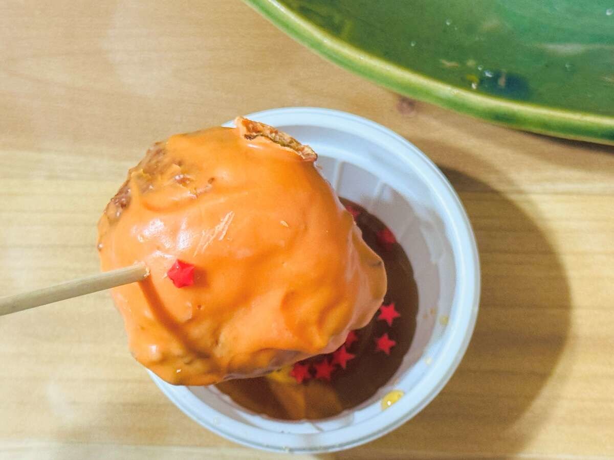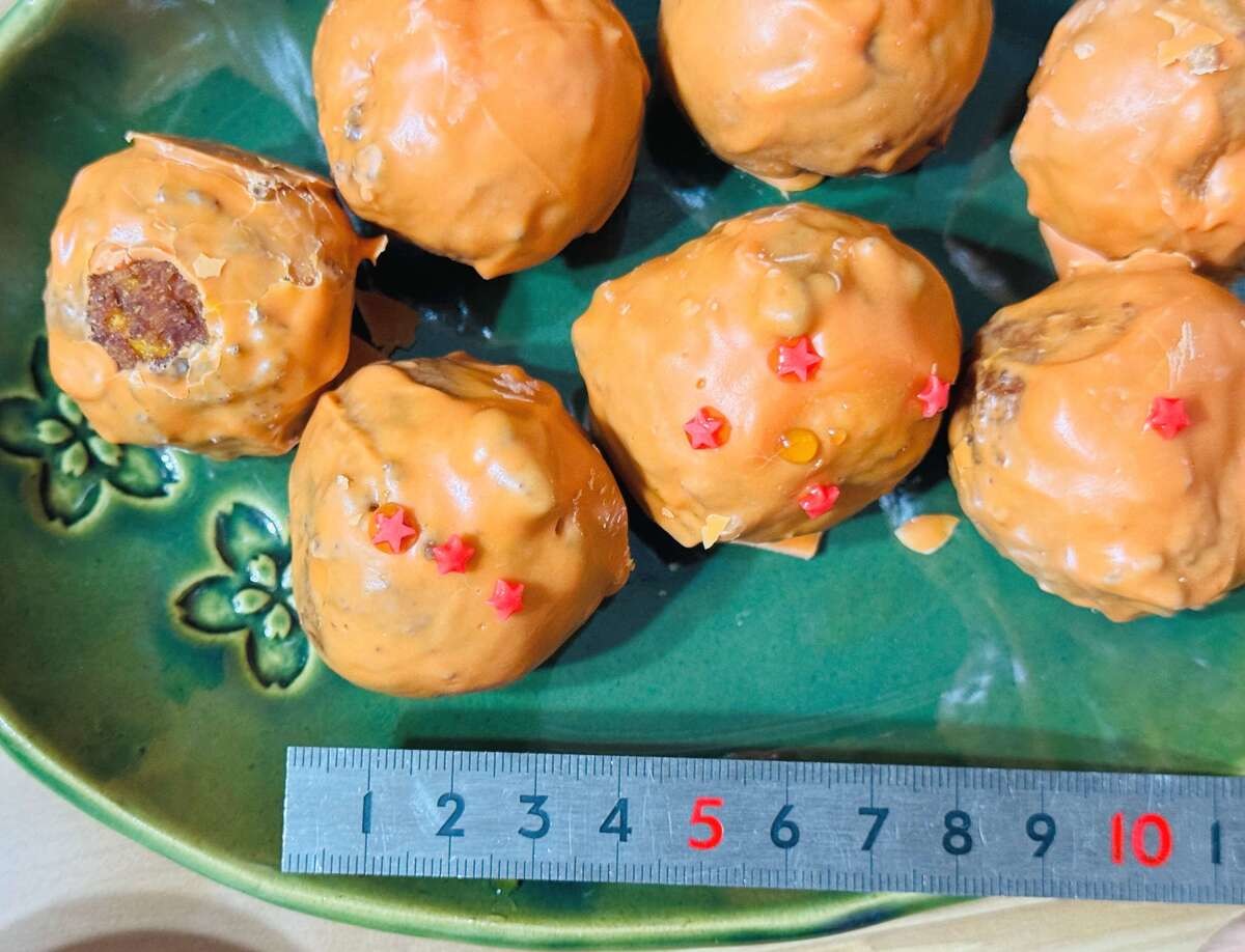 また、うどーなつ自体はオレンジ色のチョコがしっかりとコーティングされ、ドラゴンボールをイメージできるビジュアルです。筆者が知る限り、これまでのうどーなつシリーズは、パウダーをまぶすものが主でしたのでコーティングはお初。なんだか新鮮ですね。