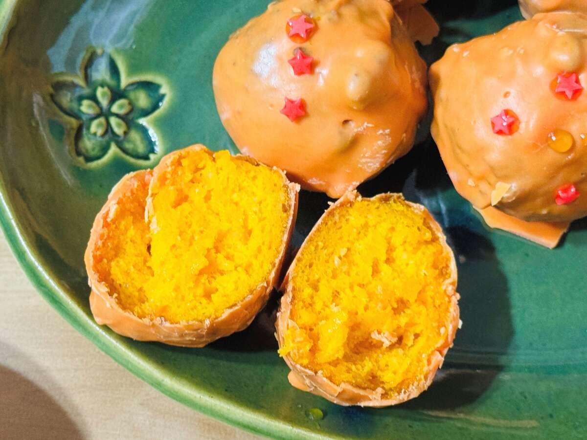 中身はチョコの色かと思いきや黄色く、にんじんを加えた生地とのことです。