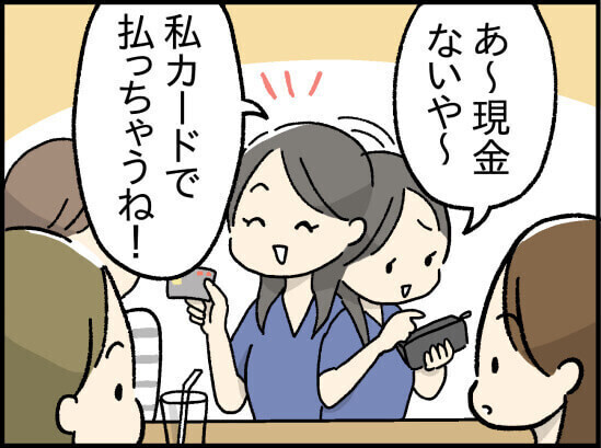 【漫画】「現金ないや〜」とお会計で言うママ友→毎回カードを出す理由に勘付いた私、「いい人のふりして(怒)」