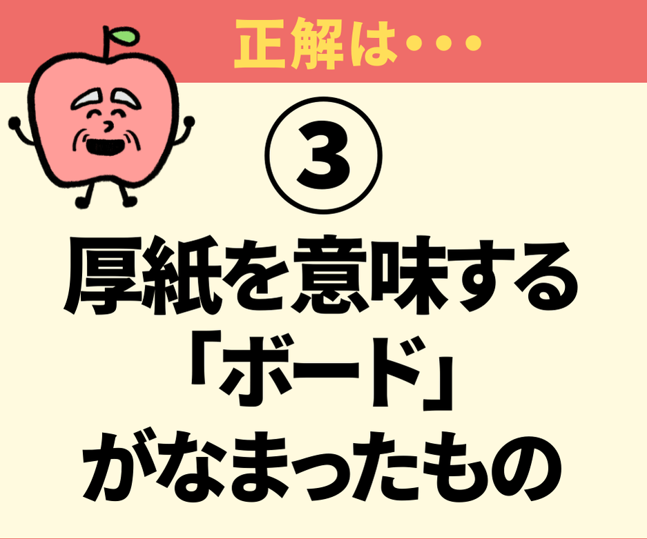 正解は… 3. 厚紙を意味する「ボード(Board)」がなまったもの です!