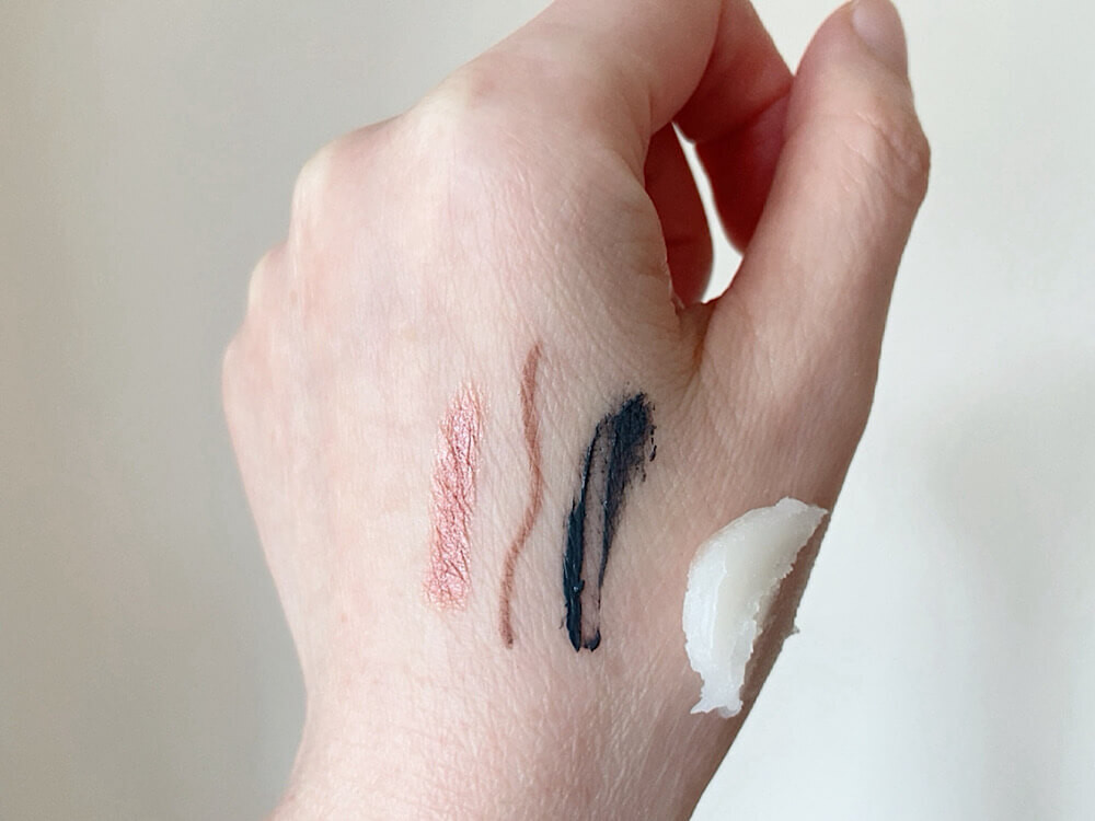 左から、アイシャドウ、アイライナー、マスカラ。