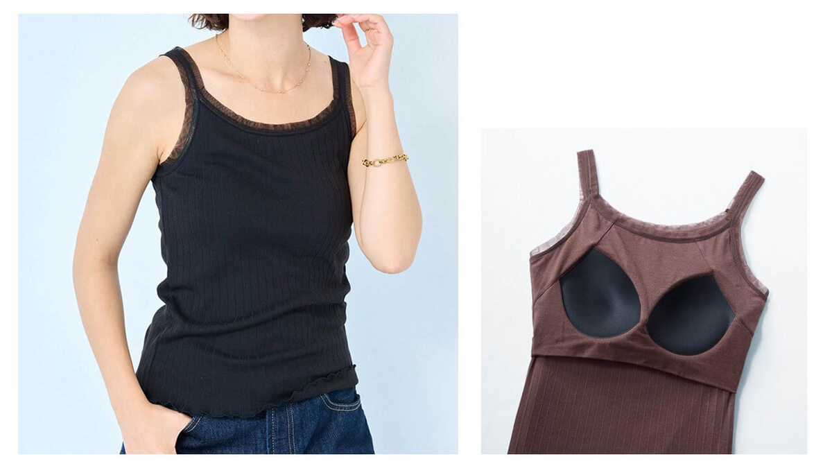 商品名/冷やしさらっとコットン・チュール使いのワイドリブブラタンクトップ