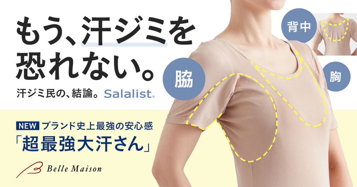 「Salalist(サラリスト)®」は、汗ジミを防ぎながら汗のベタつきやニオイ、暑さなどの様々な汗悩みをケアし、快適に過ごせるよう開発したベルメゾンオリジナルの汗対策インナーブランドです。