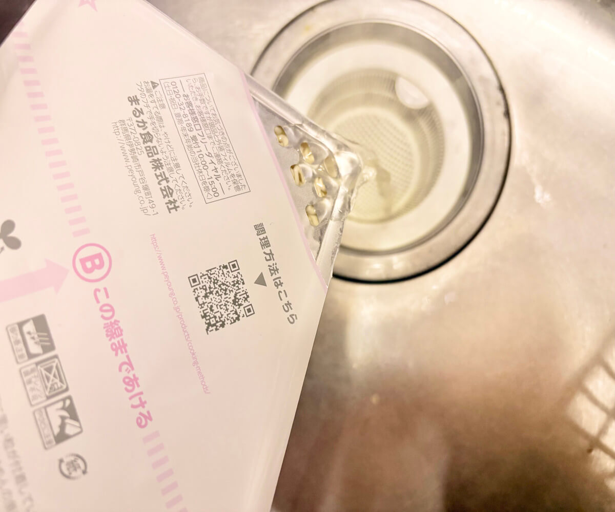 フタを規定の線まで開けて、中にある小袋を取り出していきます。
