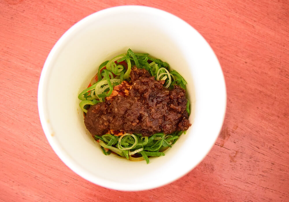 今回登場した新トッピング「肉味噌ねぎ」。牛肉のうまみを凝縮した特製肉味噌に、豆板醤とにんにくのコク、ラー油の香ばしい辛味を加えた、やみつきになる味わいが特徴です。