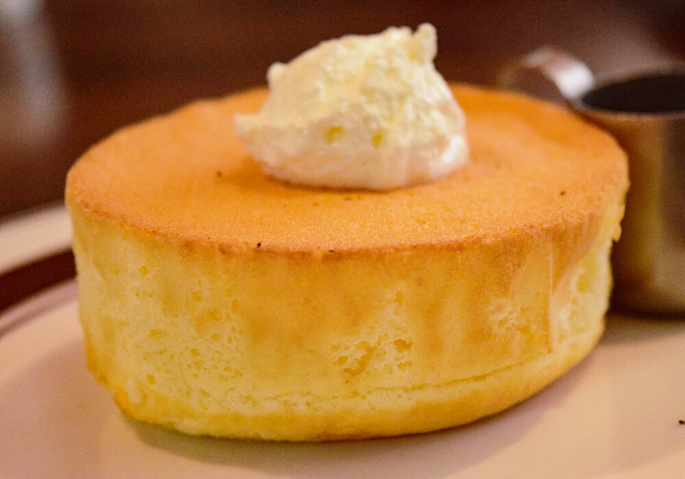 ちなみに、パンケーキは通常メニューでは「窯焼きスフレパンケーキ」という名前で販売されています。おそらくシングルは「ミニパンケーキ」と同程度のサイズと思われますが、ドリンク付きで980円(税込)となっています。