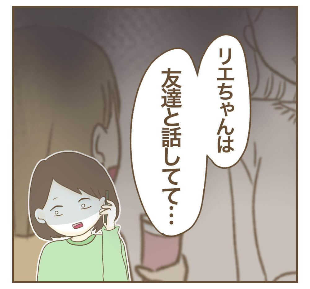 リエちゃんのあまりに身勝手な行動に、温厚なミオさんもついに我慢の限界!モモちゃんに電話をかけ、昼間公園でリエちゃんを目撃した事実を告白します。