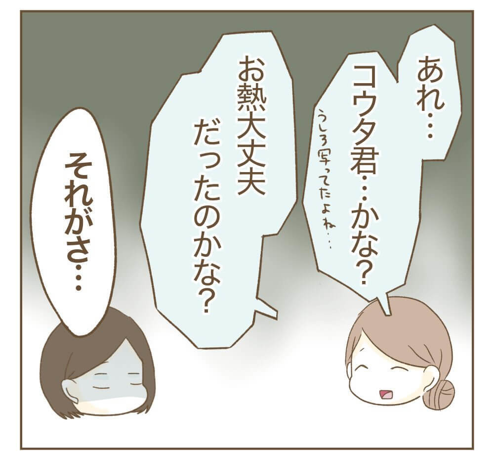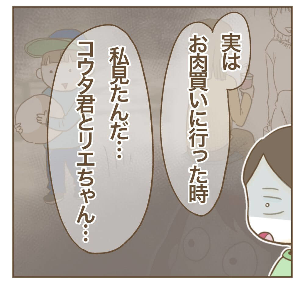 BBQの日の夜、SNSにリエちゃんの投稿が流れてきて愕然とするミオさん。やはりあの公園にいたのはリエちゃん親子だったこと、そして「子どもが高熱」という嘘をついてドタキャンしたことを確信します。