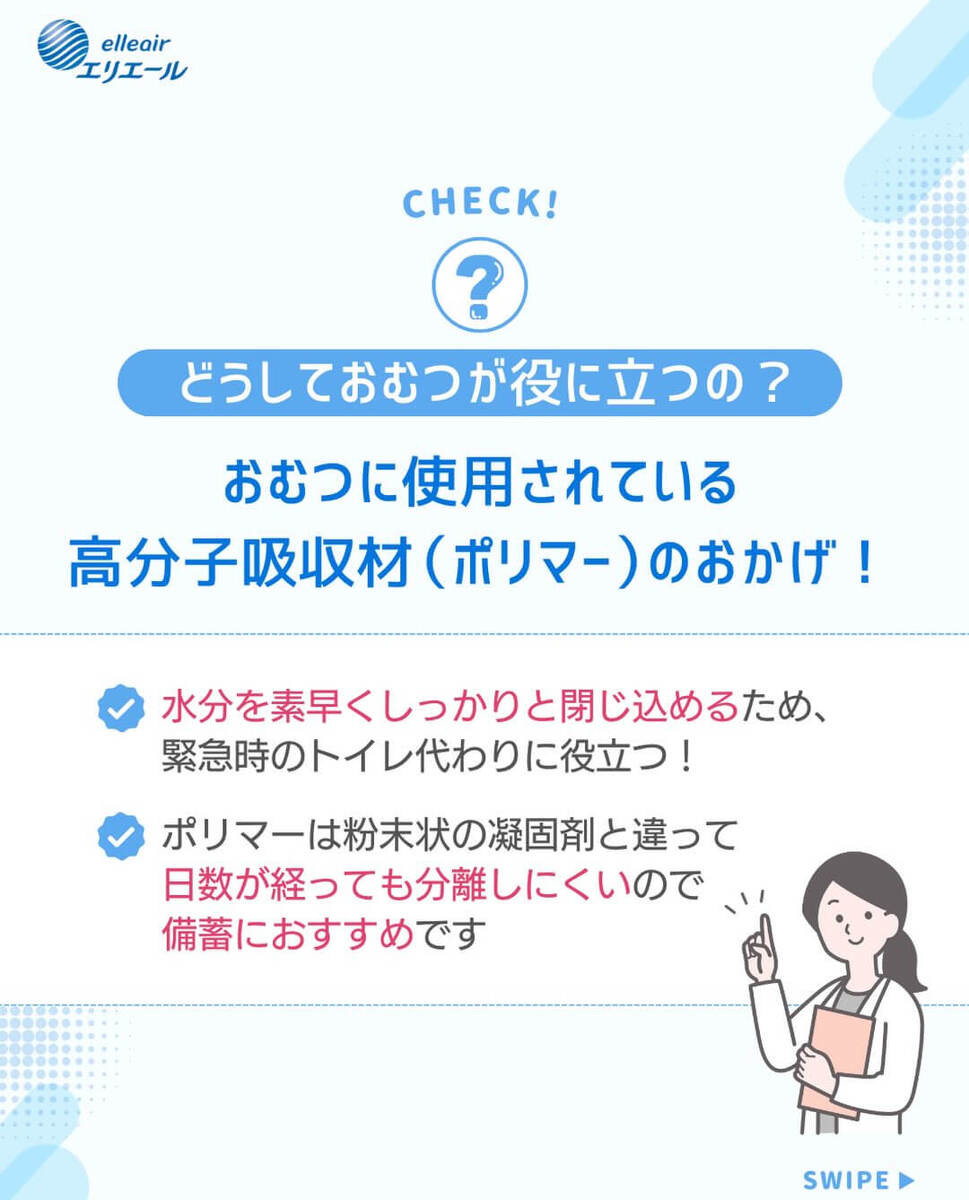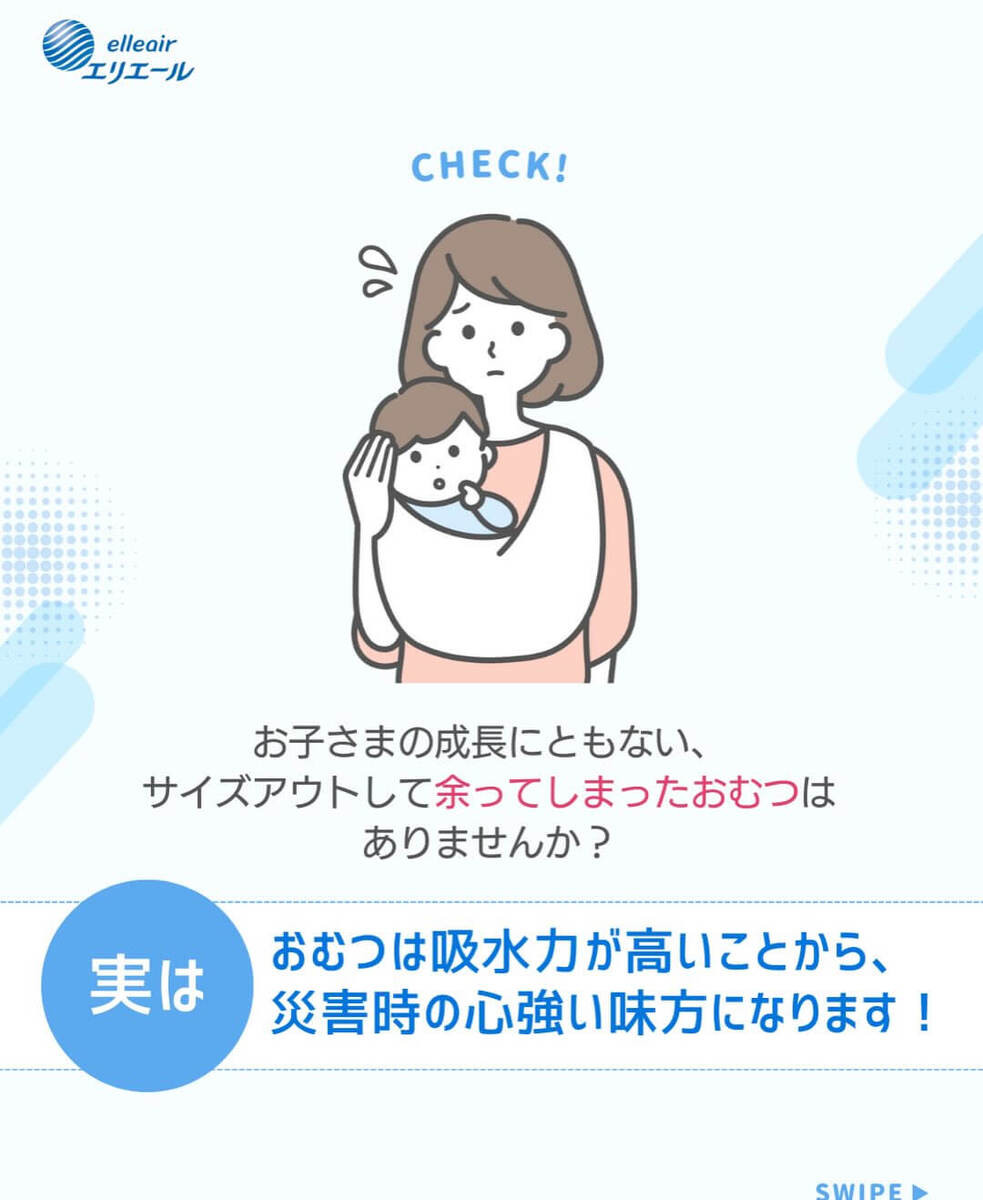 実は、おむつは吸水力が高いことから、災害時の心強い味方になります!