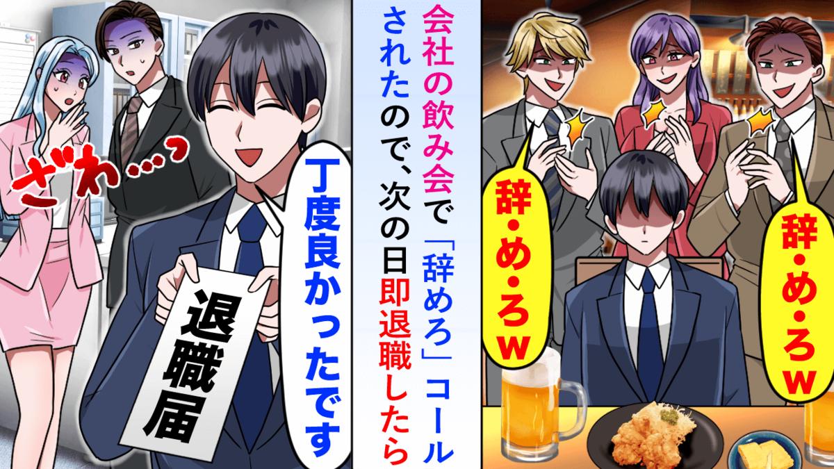 飲み会で「辞・め・ろw」と退職強要コール!→「ちょうど良かったです」お望み通り、即退職届を出した結果…