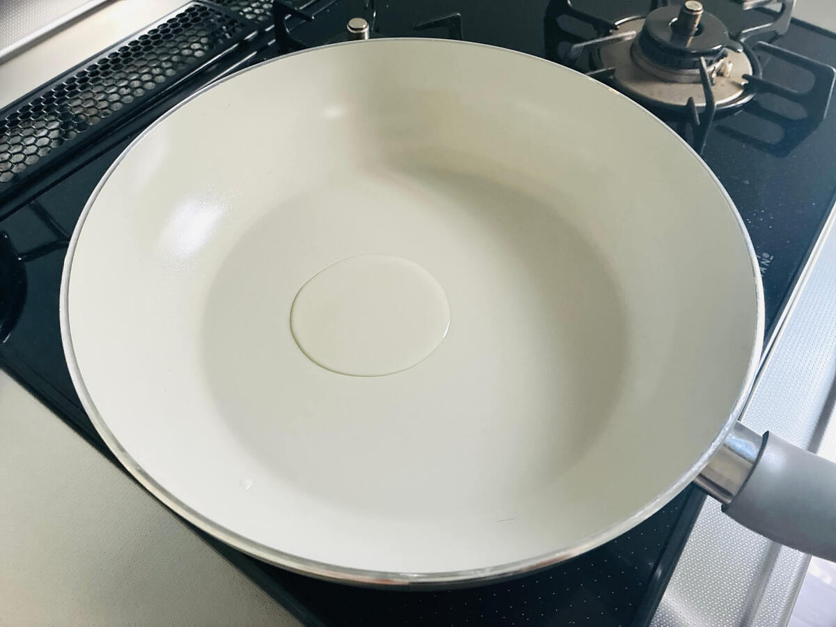 フライパンにサラダ油を入れ、中火で熱します。