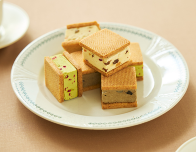 しっとりとしたクッキーでサンドすることで、濃厚ながらも後味はすっきりとした味わいです。