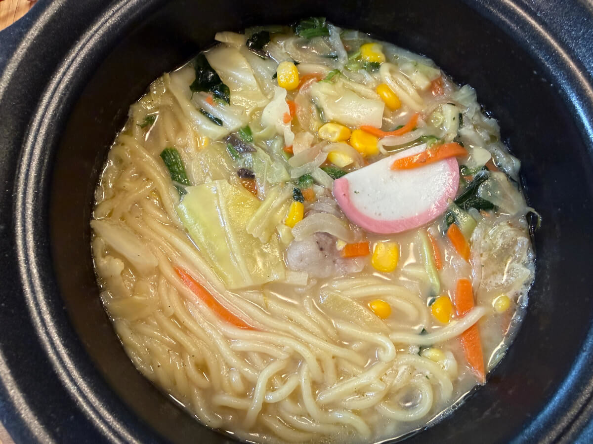 - ちゃんぽん(228円)…水いらず鍋ひとつで野菜たっぷり本格ちゃんぽん