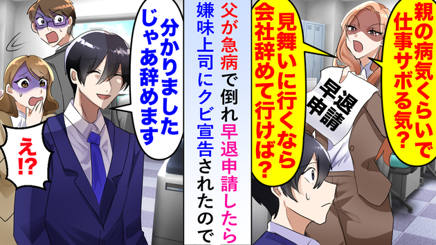 父が急病で倒れ早退申請→「見舞いに行くならクビ!」嫌味上司から冷酷な宣告!その結果、まさかの…