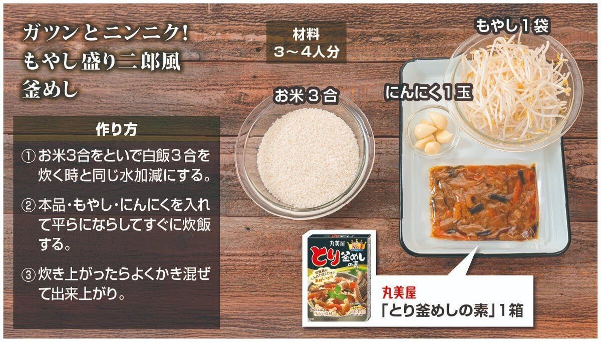 もやし、にんにくをドカンと投入!「二郎風釜めし」