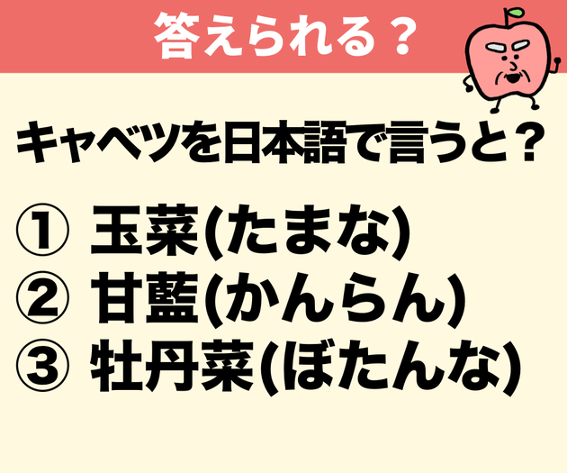 普段の食卓に欠かせない「キャベツ」ですが、日本語(和名)でどう書くか知っていますか?