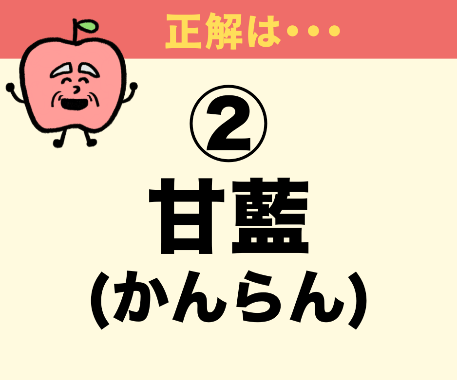 正解は… 2. 甘藍(かんらん) です! (※ 実は玉菜も間違いではありませんが、教科書や図鑑に載る『正式な和名』としては甘藍が使われます)