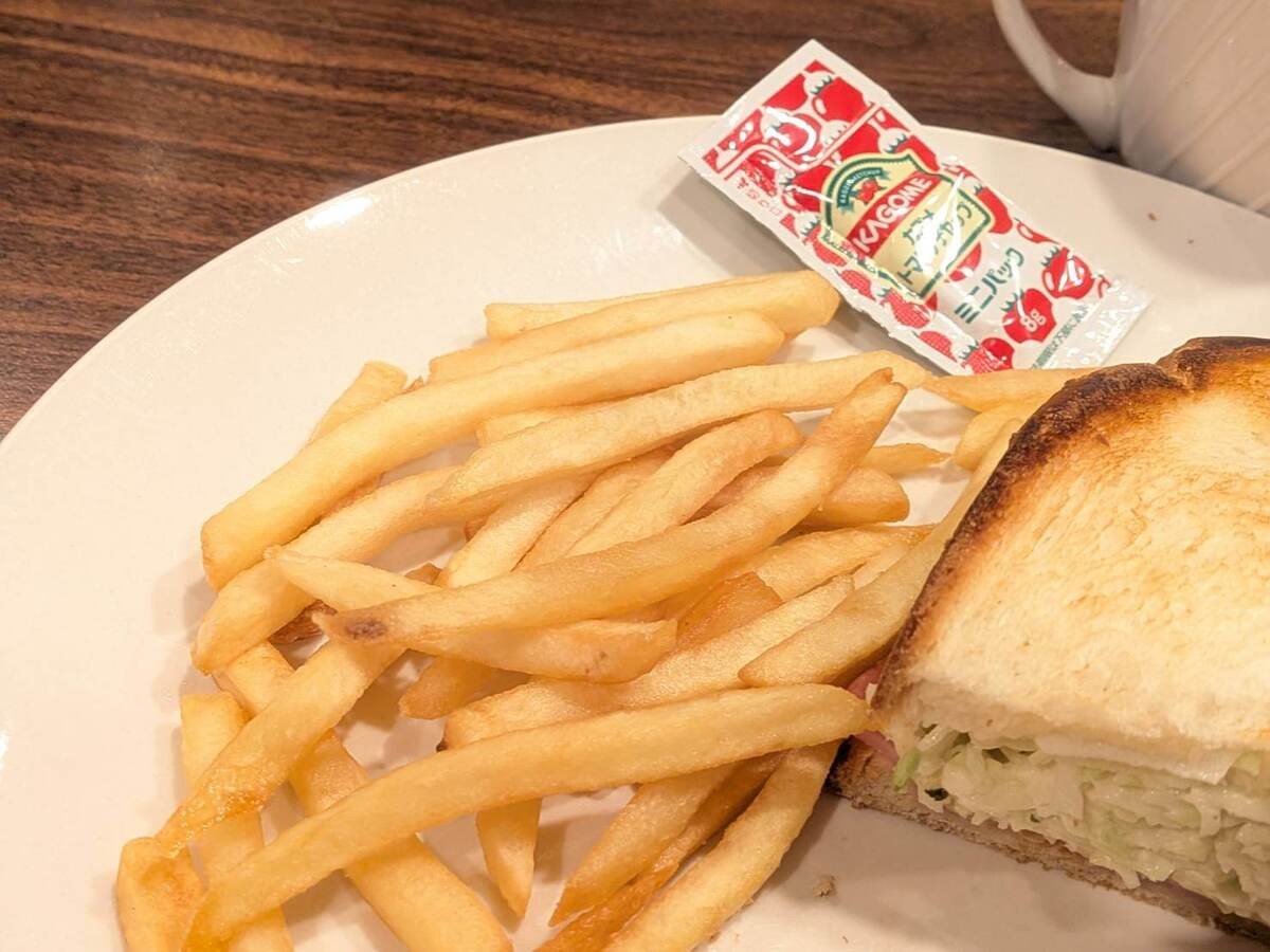 ポテトもついていて、ゴリラの食欲を持つ主婦でも朝から腹パンになっちまうすごいボリューム。朝ごはんのはずなのに満腹ランチ級です。