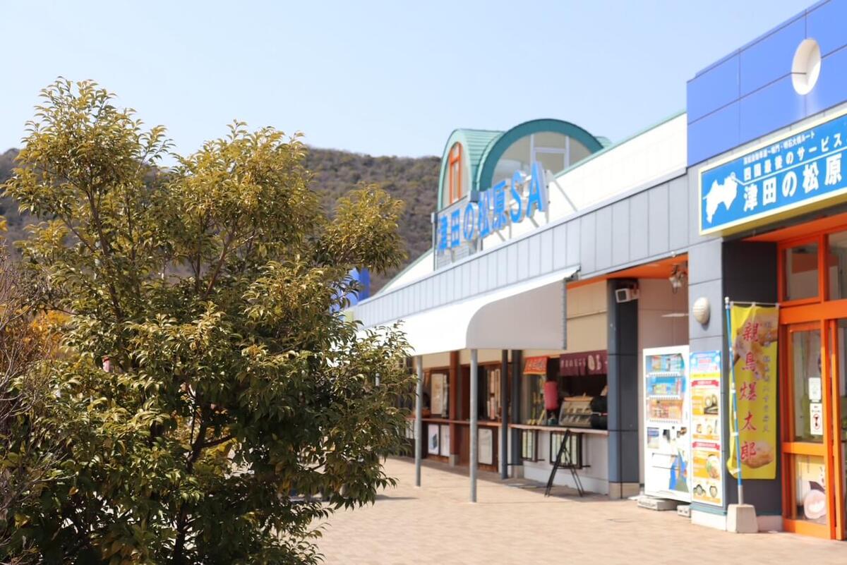 お土産コーナーから飲食まで丸ごと楽しめるサービスエリア「津田の松原」。