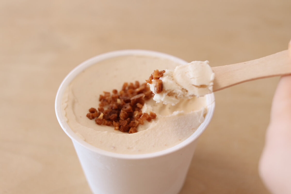 アイスクリームの上には砕いた瓦せんべいが乗っており、食べ進めていくと中にもしっかり入っていました。