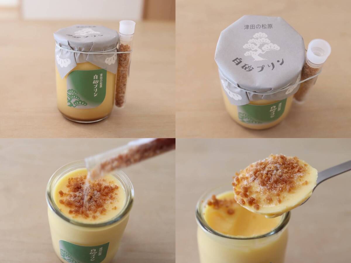 プリンは卵のやさしい味で単体でもおいしいのですが、砂キャラルを振りかけて、ザクザク食感と甘みをプラスするのも個人的に好きでした。