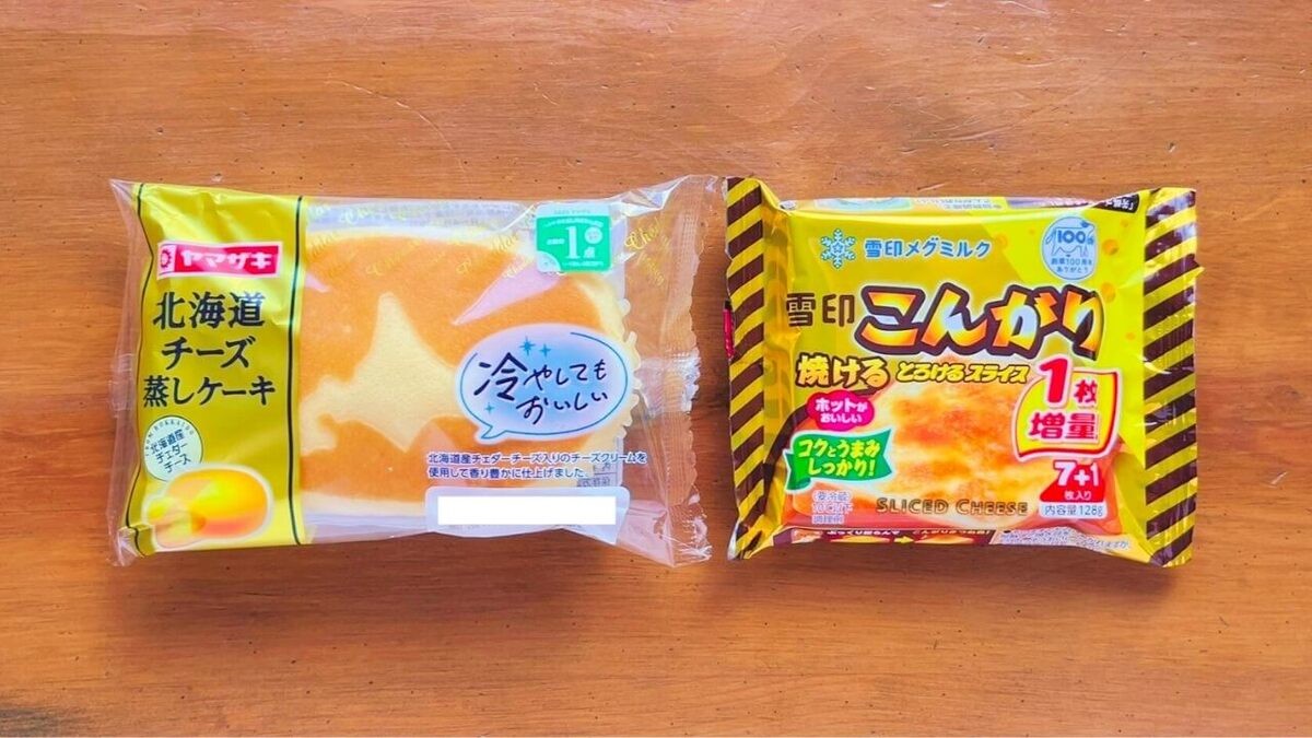 人気の菓子パン「北海道チーズ蒸しケーキ」に、スライスチーズをのせ、トースターで軽く焼くと美味しいです