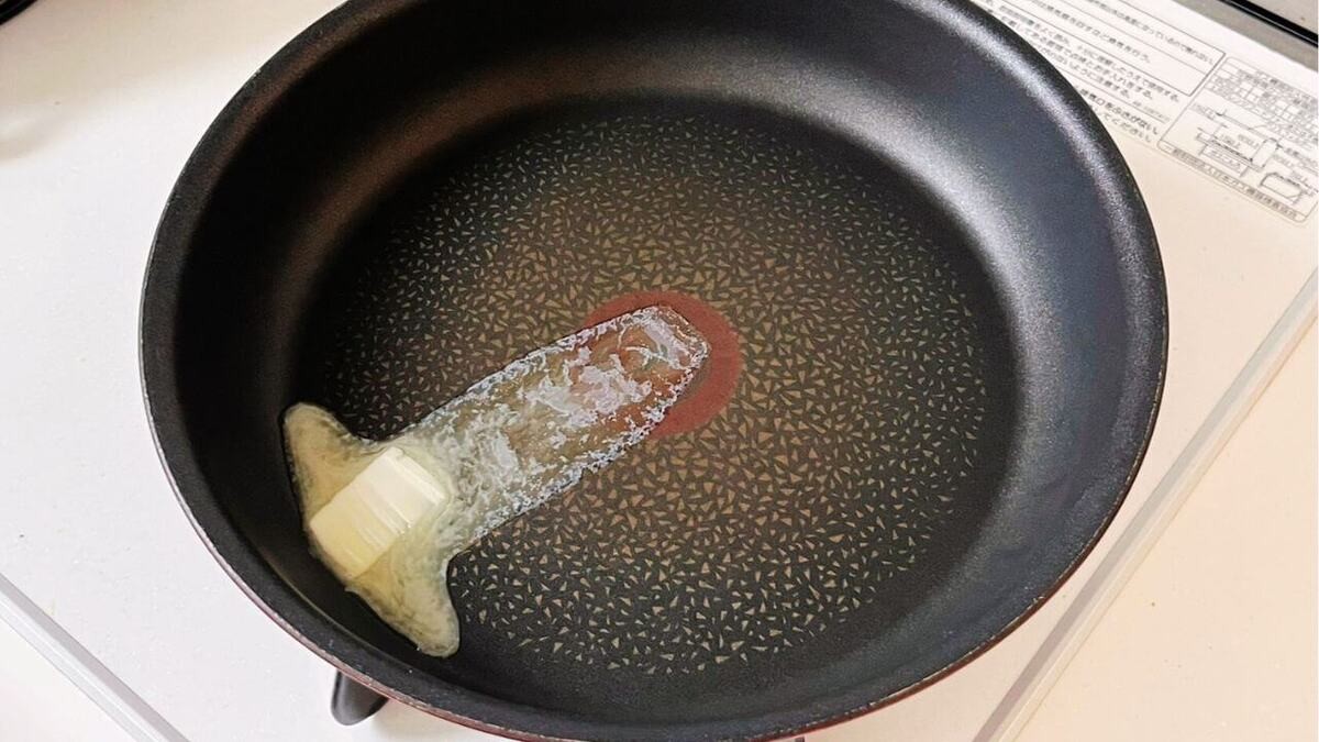 フライパンを火にかけて、バター(まずは5gのみ)を溶かします。