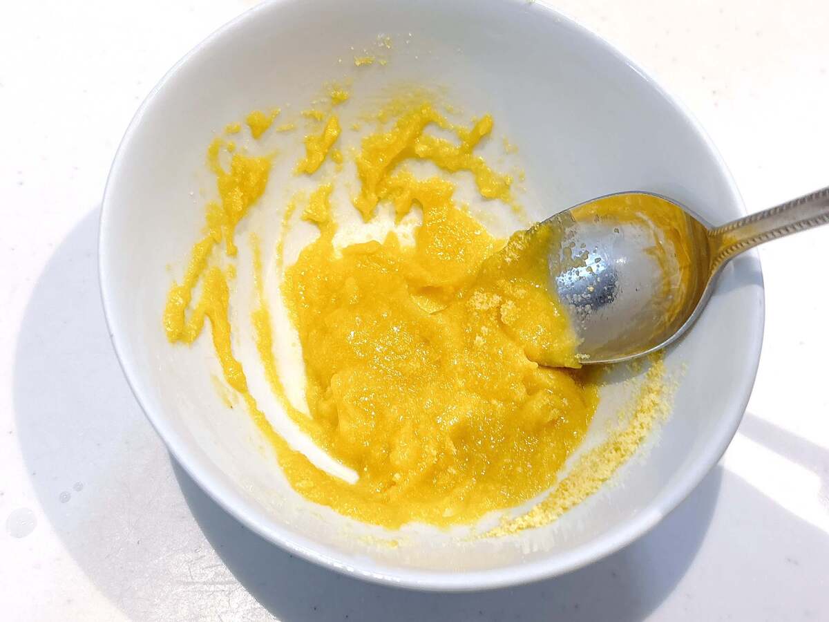 コーンスープの素をペースト状にします。