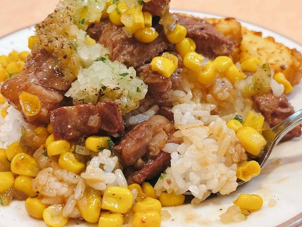 コーンをのせただけで、ちょっとだけペッパーランチっぽくなってきました!